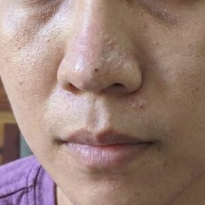These are small, dome-shaped papules or bumps that sometimes can be mistaken for active acne.